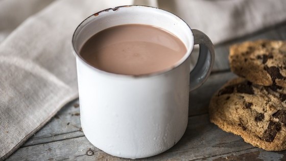 Leche con cacao y unas galletas muy apetitosas. ¡Vamos a desayunar dos mezclas!