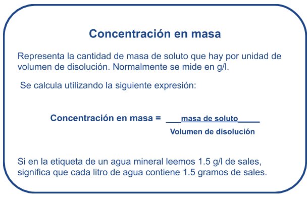 La concentración es la cantidad de soluto que hay en una cierta cantidad de disolución.